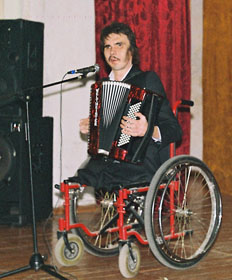 (не смог вставить коментарий в текст призведения по непонятной причине) Это стихотворение я продекламировал на мероприятии в котором участвовал инвалид первой группы: Руслан Шамсутдинов. Он был рожден слепым. Но в отличии от многих себе подобных слепых детей, с раннего детства отличаллся своей подвижностью, и пытливым умом. Он учился игре на аккордеоне, для этого, при помощи провожатого, каждый раз ездил в крнсерваторию на метро. Но случилось несчастье, люди не зная про его зрение, в толкучке столкнули его под приближающийся вагон. Ноги были ампутированы. Левая половина лица сильно деформированна. Так же были повреждены другие части тела. Не смотря ни на что, он выжил, мало того, он продолжил обучение. Преподаватели музыки из консерватории, сами приезжали к нему домой. Сейчас Руслан активно выступает на благотворительных концертах. Работает учителем комьпьютерной грамотности для слепых. Верит в Иисуса Христа.
